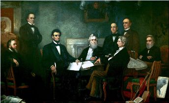 Lincoln presents the first draft of the Emancipation Proclamation to his cabinet. Painted by Francis Bicknell Carpenter in 1864 | Wikimedia Commons