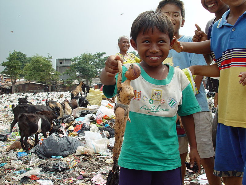 **A boy from an East Cipinang trash dump slum shows his find, Jakarta Indonesia | Jonathan McIntosh (thehero) | Wikimedia Commons