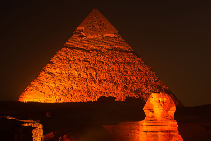 In Egypt, the Sphinx and Pyramids of Giza were lit in orange on 10 December 2014. Photo: UN Women/Mohamed Ezz Aldin