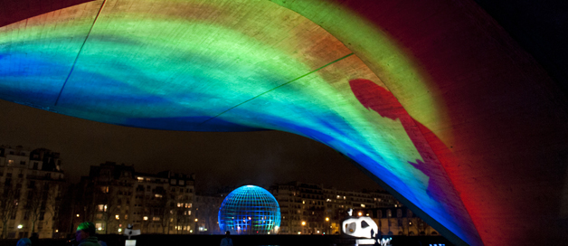 19 January 2015 — Tonight, an Aurora Borealis graced UNESCO’s Globe in Paris. The Northern Lights, a natural phenomenon only seen in much higher latitudes, were reproduced by artist Kari Kola on the UNESCO Headquarters in celebration of the International Year of Light 2015, which opened with a special event on 19 and 20 January.