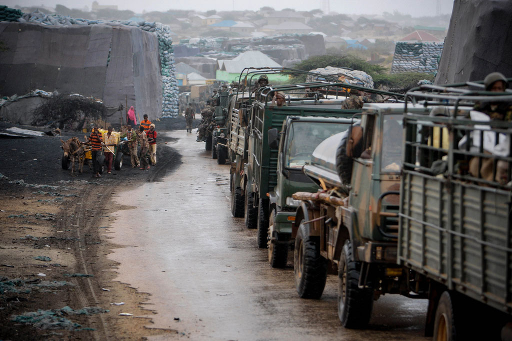 Kenyan troops serving with AMISOM make their way through the Somali port city of Kismayo following the ouster of Al Shabaab militants. UN Photo/Stuart Price