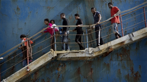 **Photo: Åsa Sjöström/IRIN | Migrants disembark at the Sicilian port of Catania after being rescued from a shipwreck by a merchant vessel on 5 May