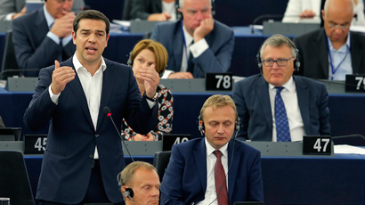 9 July 2015 (RT)* – Greek PM Alexis Tsipras had a hard time defending his country’s aim for a fair debt deal in front of an EU Parliament session in Strasbourg, opting to remind MEPs that even the strongest European economy was once on its knees seeking solidarity.