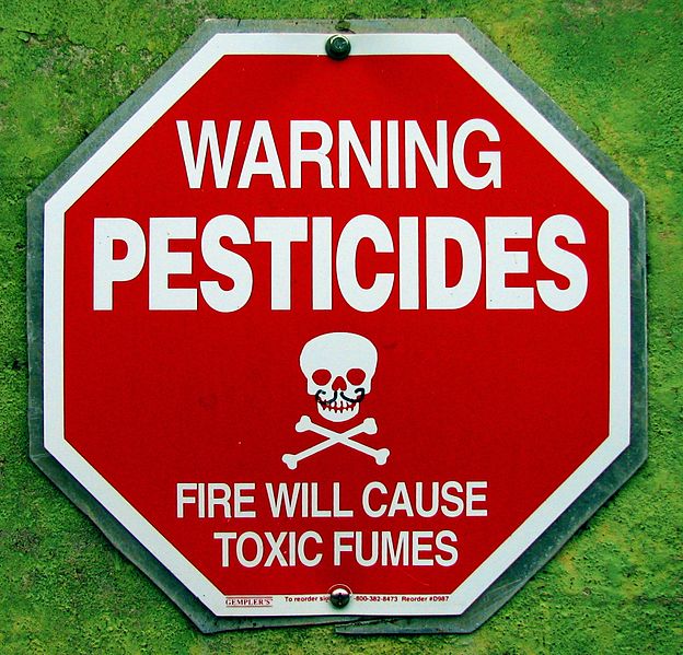 ****A sign warning about potential pesticide exposure. | Author: CGP Grey http://www.cgpgrey.com | Source: Warning Pesticides: Fire Will Cause Toxic Fumes | Creative Commons Attribution-Share Alike 3.0 Unported license. | Wikimedia Commons