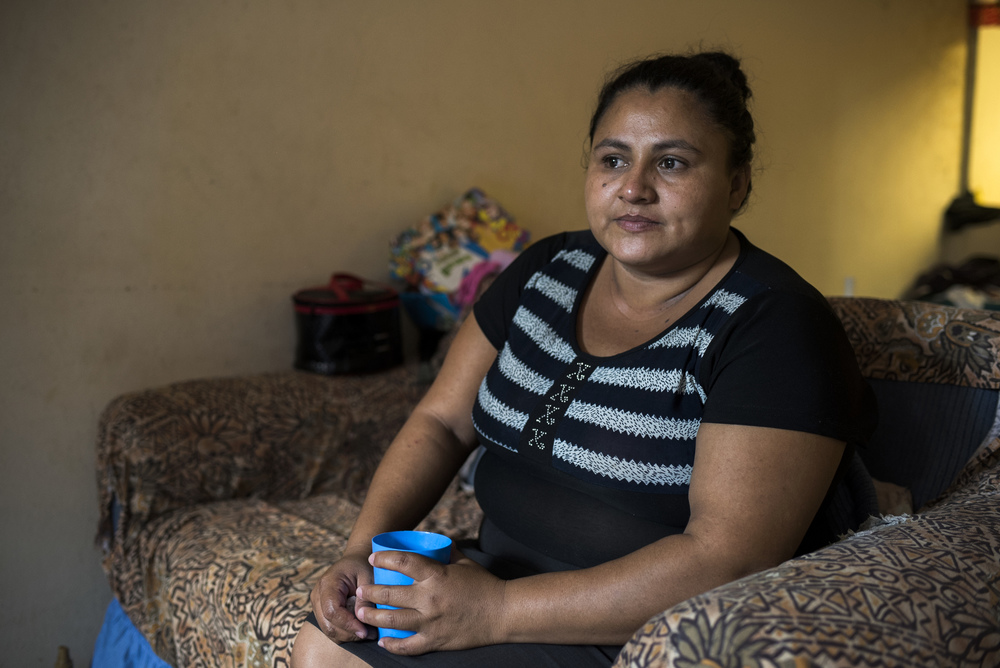 TAPACHULA, MEXICO – January 9: Thirty year old Damaris Yamileth Turcios Lara, from Honduras, at the home where she and her three children are staying in Tapachula, Mexico on January 9, 2016. Her oldest daughter, Digna, watched members of Barrio 18 killed her uncle for refusing to join the gang.