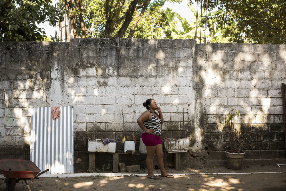 TAPACHULA, MEXICO – January 9: Twenty nine year old Diana Guadalupe Caballero, from Honduras, talks to her family in back home at the Buen Pastor migrant shelter in Tapachula, Mexico on January 9, 2016.