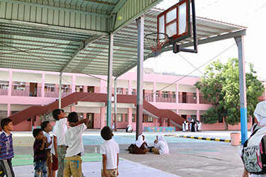 School children in Manssorah School in Aden, seven months after it reopened following closure due to the conflict.