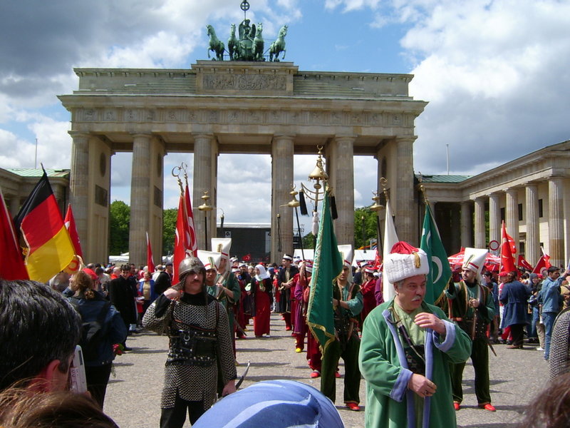 **Janissary procession trough the Brandenburger Tor at the “Türkischen Tag” (Turkish Day) in Berlin |Author: User:Danyalov | public domain.
