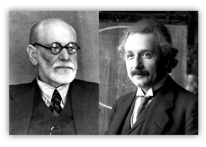 Figure 17.1: Sigmund Freud and Albert Einstein (public domain). Their exchange of letters entitled “Why War?” deserves to be read by everyone concerned with the human future.