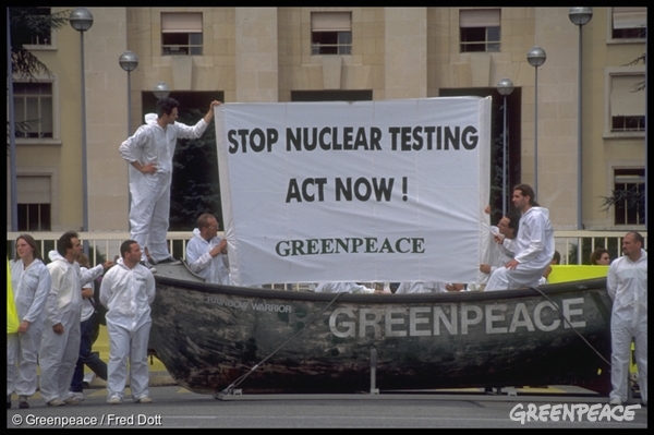 Protest at the UN building in Geneva, encouraging nations to sign the CTBT.