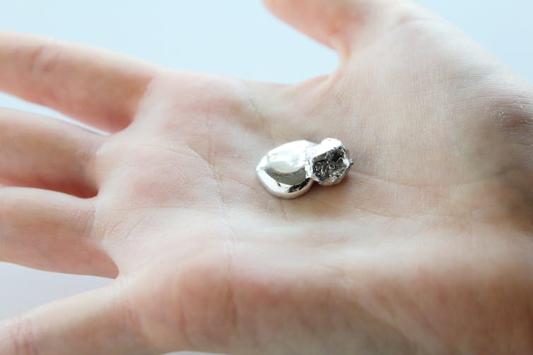 Gallium melts at 30°C. Shutterstock | Photo from The Conversation.