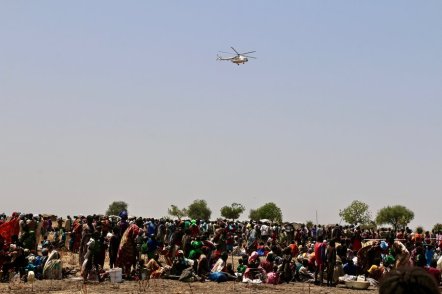FLASHBACK: A WFP helicopter arrives in Thonyor Payam, Leer County, as famine is declared in South Sudan in 2017. Photo: WFP/George Fominyen