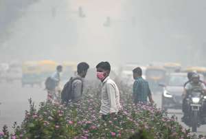 Heavy smog seen engulfed amid rise in pollution levels at Barakhamba on November 2, 2023 in New Delhi, India. The Air Quality Index (AQI) remained in the “very poor” category for the sixth consecutive day on November 2. © Sanchit Khanna/Hindustan Times via Getty Images.